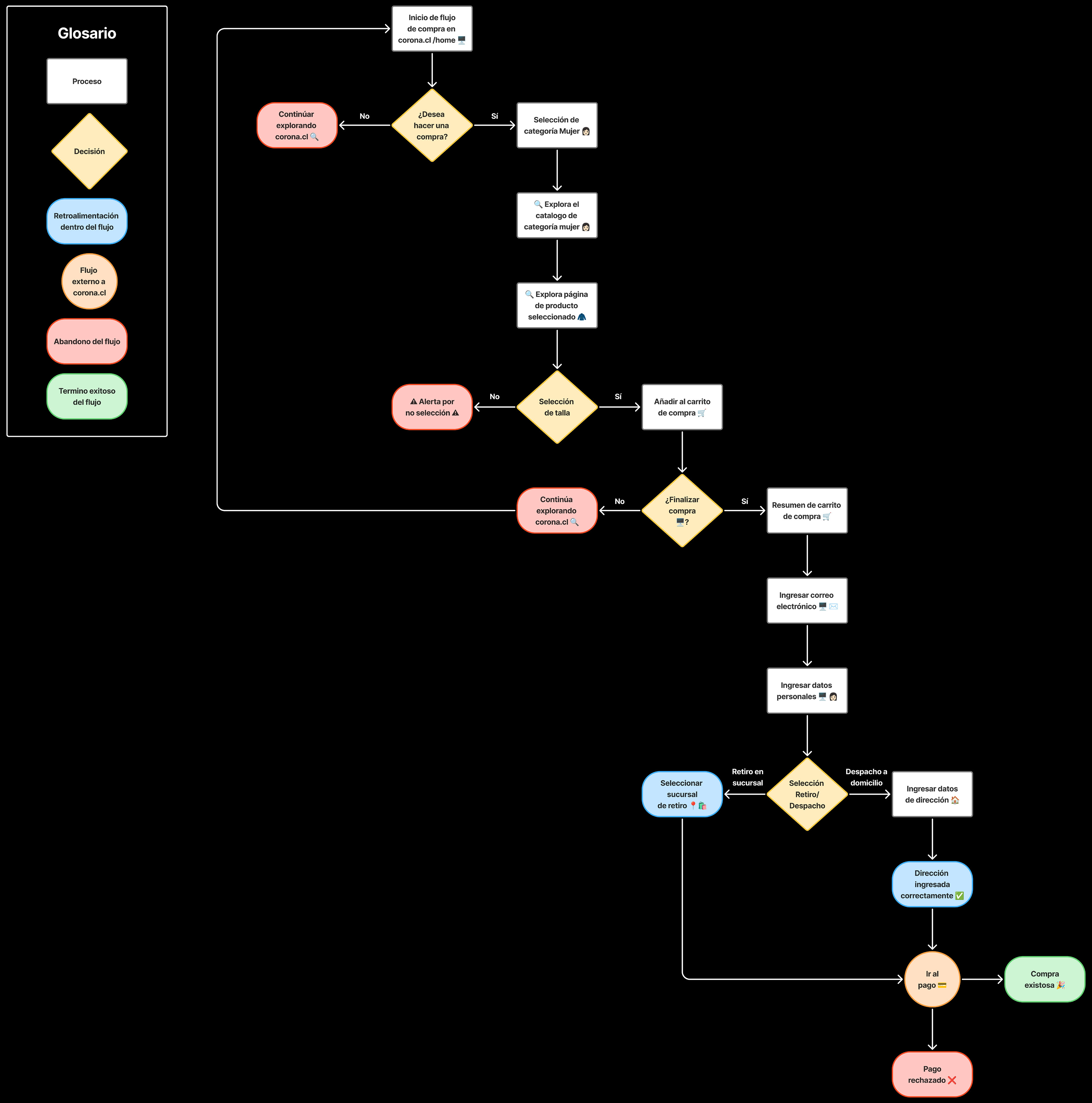 Para que corona.cl sea un éxito y llegar a nuevos usuarios o usuarios que están acostumbradas a ir a sus tiendas, es importante diseñar el flujo correcto para que las ventas sean exitosas.